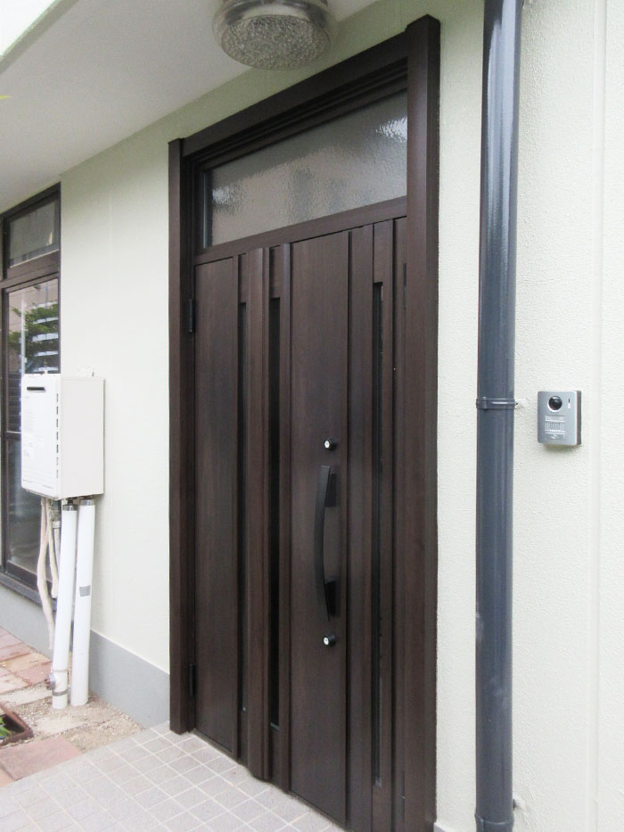 玄関は家の「顔」であり、出入りが多いところでもあります、防犯も兼ねての素敵なリフォーム工事になりました。