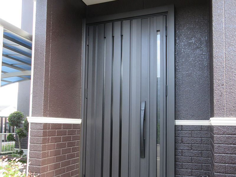 玄関の設置箇所が外壁の角(入隅)であったうえ、外壁材の上下を仕切る見切り材もあったため、新設玄関の額縁材の加工はやや手間がかかりましたが、きれいに仕上がり満足しています。